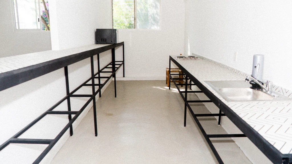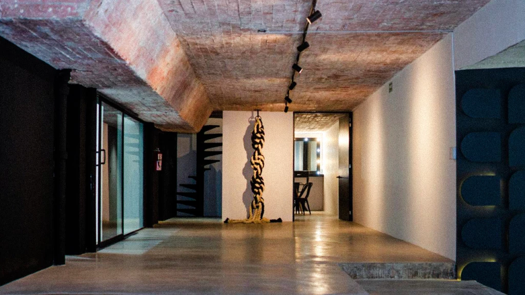 facilita el diseño de arte al ofrecer una base neutra de concreto y blanco que reduce la necesidad de revestimientos costosos.